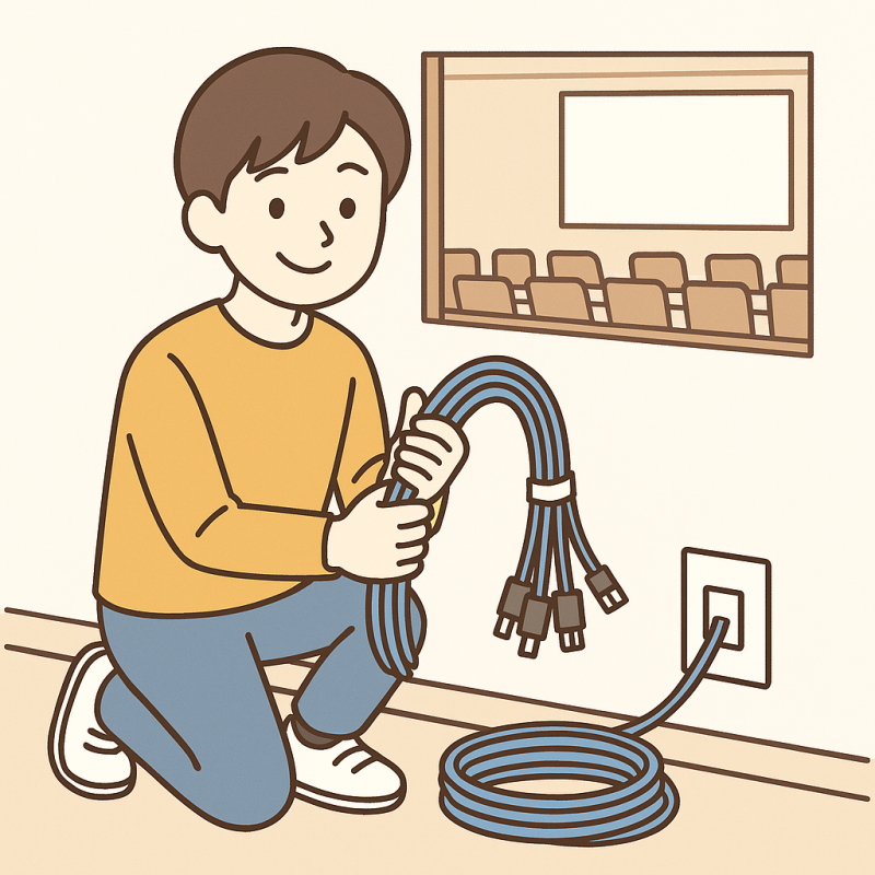 実際の現場では、新品のケーブルを使用する際、設営前に梱包から出す作業が発生します。