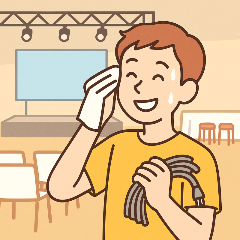 時間がタイトな会場設営において、数分の短縮が全体スケジュールに与えるインパクトは大きく、